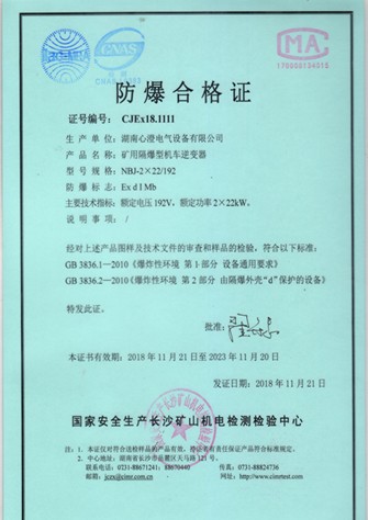 矿用隔爆型机车逆变器192防爆合格证(主司控)