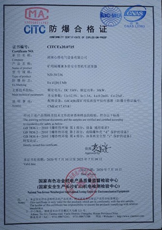 矿用隔爆兼本质安全型机车逆变器336V(NJJ-30336)防爆合格证
